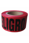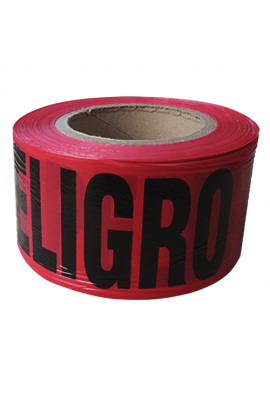 La cinta de señalización "Peligro" está en color rojo con negro, tiene una medida de 3 pulgadas por 305 metros y una elongacion de 400 % antes de romperse.