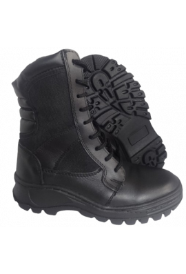 El calzado mod. Bota táctica es de piel 18/20, tubo con loneta y piel. La suela es de hule vulcanizado, cosida y pegada. El forro es de malla con esponja de 4 mm. La planta está compuesta de fibra de celulosa diseñado para calzado de seguridad, estabilidad y distribución del peso del usuario, tiene un refuerzo en el talón de fibra compacta. La plantilla con tratamiento antibacterial y antimicótico, confortable, alta resistencia a la fricción, ANTIFATIGA.