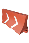 La barrera especial con 4 reflejantes para protección vial, es hueca y anidable. Está fabricada de polietileno de media densidad en color naranja con medidas de 194.2 cm de largo, 65.8 cm de ancho y 95 cm de hondo.