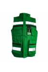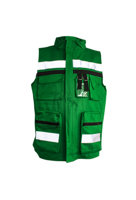 Este chaleco MF está hecho con tela gabardina, tiene alta visibilidad y está disponible en color amarillo, verde, naranja, azul, rojo, negro y café en talla chica, mediana, grande, extra grande, 2XL y 3XL.